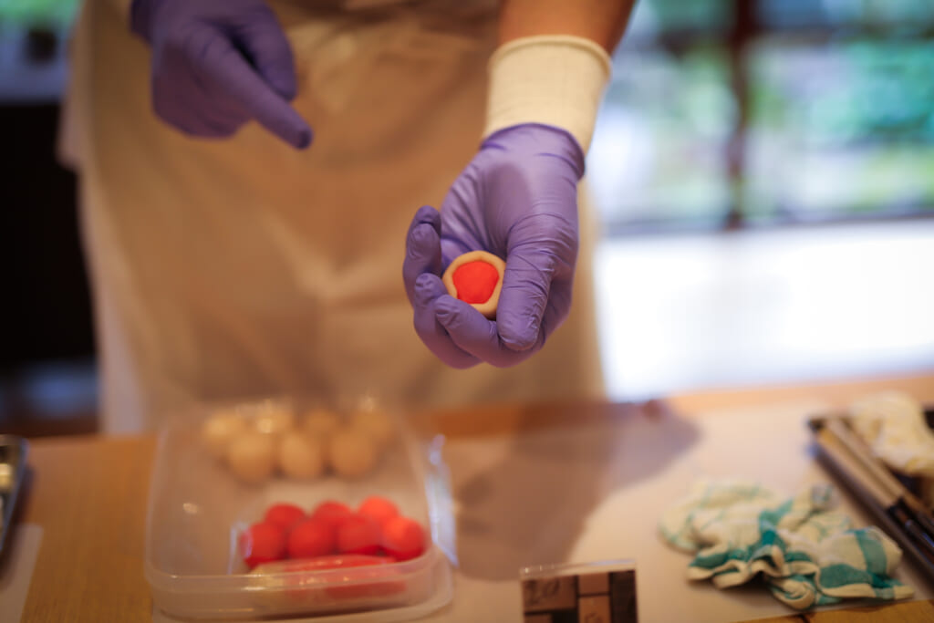 初めに基本となる餡子を包む技法から丁寧にお教えいたします。練習用餡で数回「包み技法」の練習を行うため、初めて体験する方でも安心してご参加いただけます。