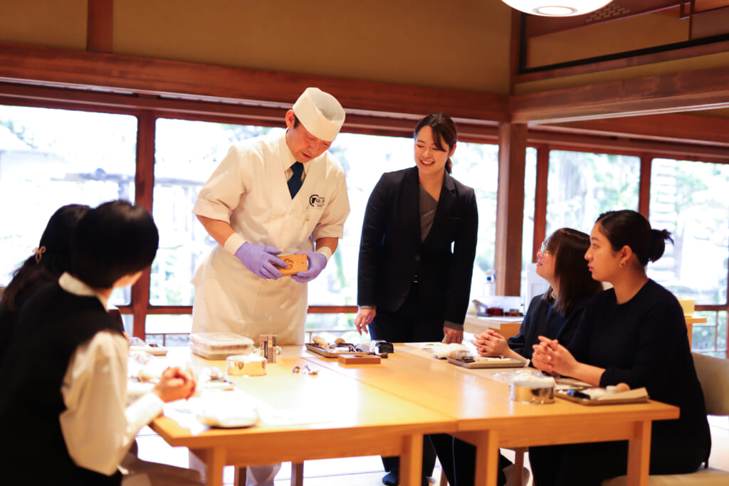 伊賀上野の地で、大正九年から続く老舗「くらさか風月堂」より三代目大将を講師として迎え、国の登録無形文化財にも指定された「菓銘(かめい)をもつ練り切り」を体験。